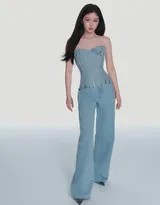 虞书欣复古牛仔写真演绎摩登风情 抹胸套装勾勒曼妙身姿