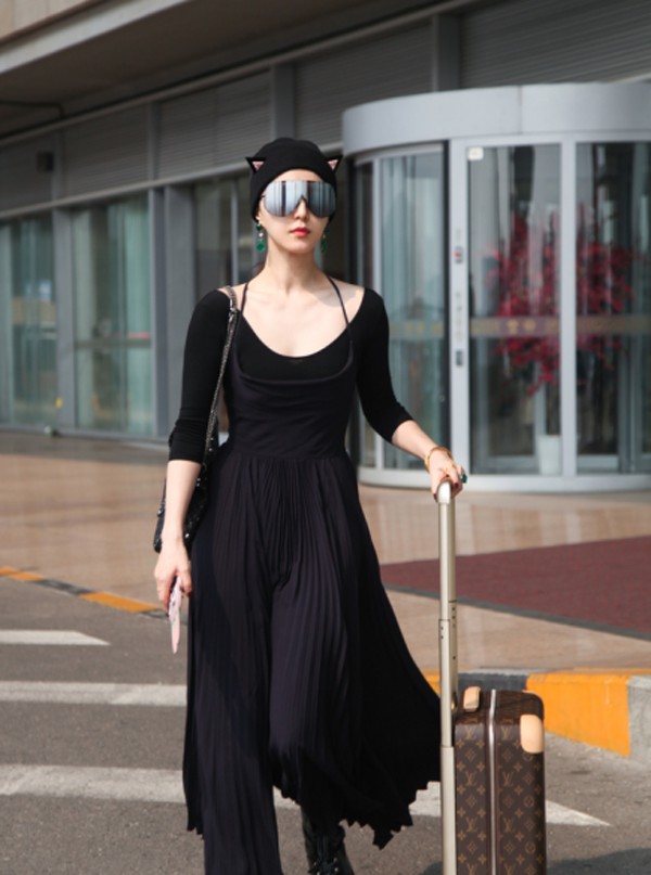 范冰冰机场启程巴黎时装周粉红朋克造型惊艳全场