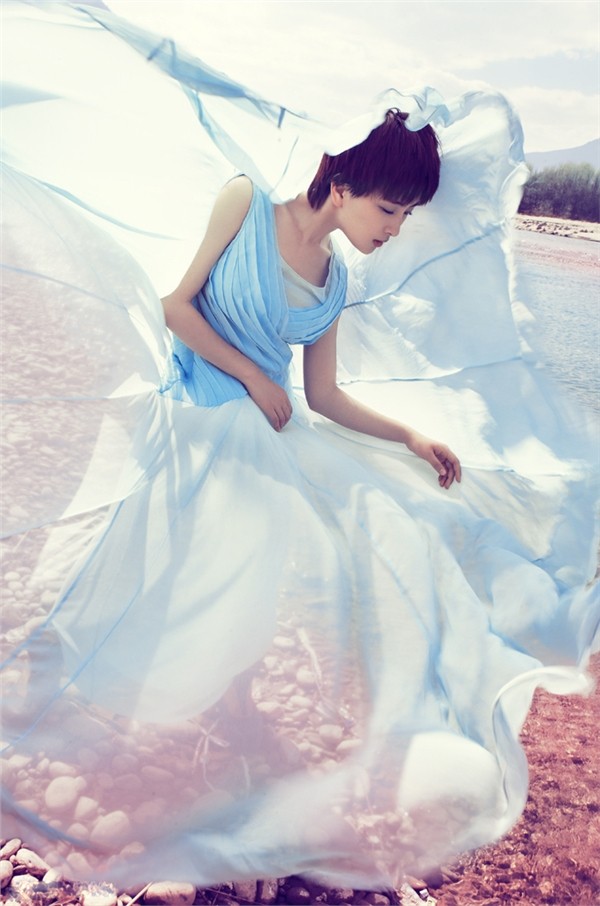 写真中,马苏的造型与互动同样可圈可点。她身着的服饰简洁而富有设计感,特别是那随风飘扬的轻薄纱质材料,成为了整组写真的灵魂。薄纱的飞舞不仅动态地打破了画面的静止,更赋予画面一种呼吸感和韵律感,仿佛她并非在刻意摆拍,而是真正与周围环境的风、光、气息共同律动。这种灵动气质的绽放,与她此前以纯白蕾丝裙造型营造的“童话小公主”般仙气十足的梦幻意境异曲同工。无论是薄纱还是蕾丝,马苏都能借助这些极具女性气息的元素,恰到好处地展现其优雅、轻灵又略带娇艳的多样魅力。