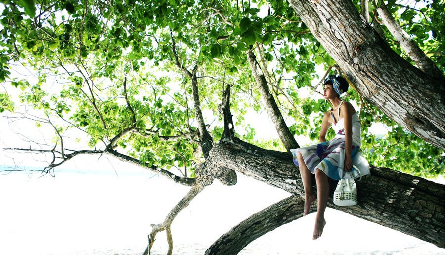 对水的亲近与驾驭,似乎是张歆艺展现时尚表现力的一种独特方式。除了这组经典的海边写真,她后来也曾尝试过泳池主题的时尚大片。在水的包裹与浸润下,服装贴合并勾勒出身体线条,传达出一种既清凉又充满韵味的视觉语言,展现了其不同于日常的、更具张力的时尚可塑性。水的元素,在她不同的影像作品中,都成为了衬托其个性与魅力的重要介质。