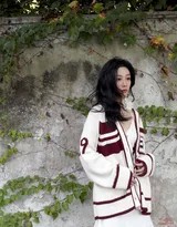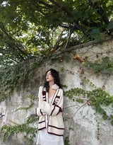 写真拍摄于户外自然环境,斑驳的树影、泛黄的草地与杨紫的穿搭色调和谐相融。白色连衣裙的简约纯粹与深V设计带来的些许性感张力形成巧妙平衡,而外搭的格纹针织线衣则注入了浓郁的秋日氛围与学院风的俏皮感。这种“外厚内轻”的叠穿方式,不仅符合季节温度,更在视觉上塑造了丰富的层次,让整体造型在清新中不失个性,率性中带着温柔。