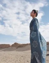 写真将场景置于苍茫辽阔的沙漠之中,黄沙无垠,天地浩渺,瞬间将观者带入《一念关山》那个风云诡谲的江湖世界。在这里,杨盈不再仅仅是深宫里的金枝玉叶,而是直面风沙、心怀家国的行者。