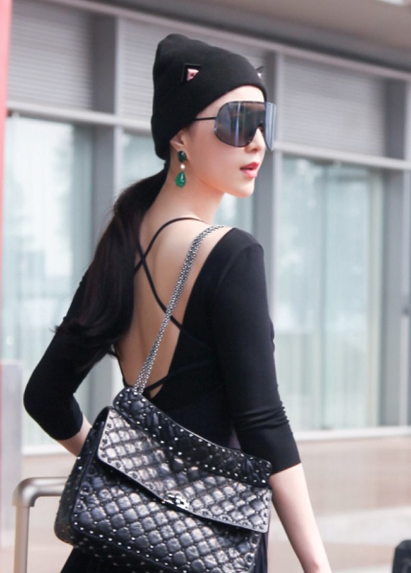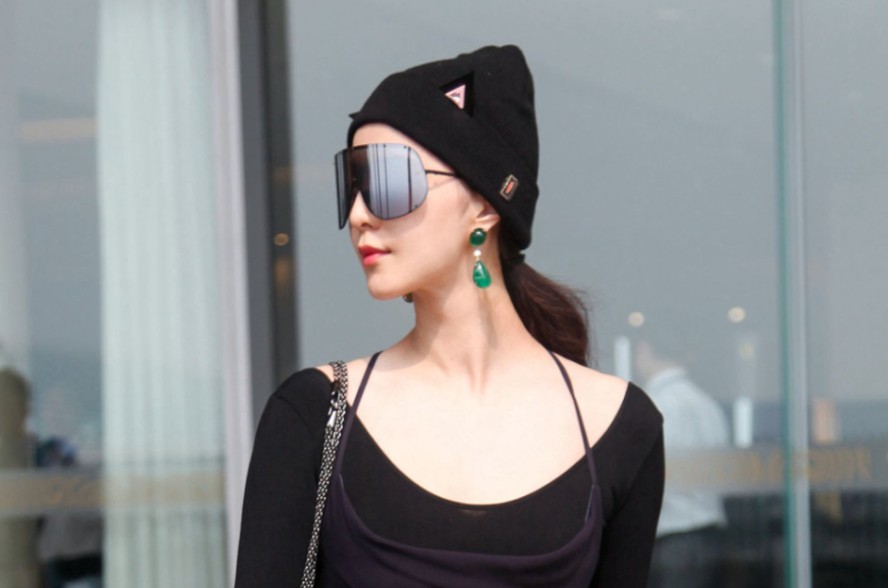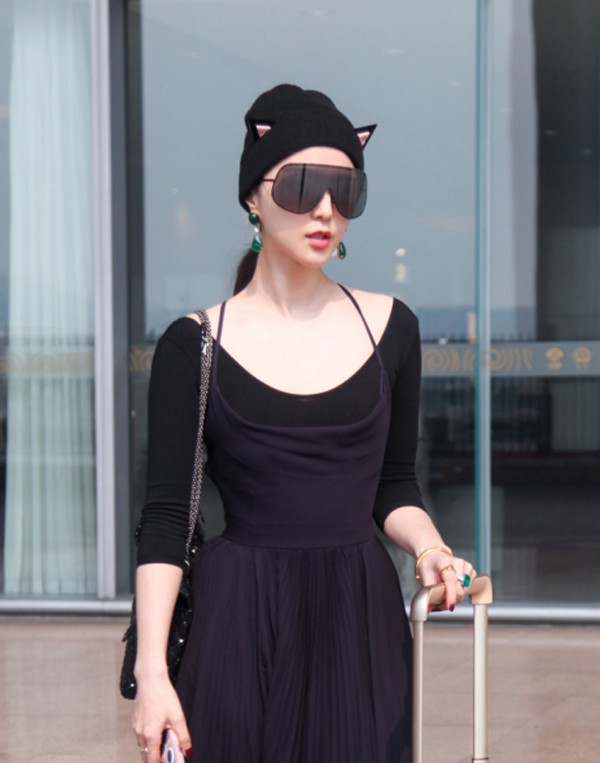 范冰冰机场启程巴黎时装周粉红朋克造型惊艳全场