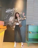 吴宣仪的时尚哲学,从来不是单品的简单堆砌,而是风格与自我的表达。正如她在访谈中曾提到的:“造型要为舞台服务,但真正的风格来自于自信。” 这种自信让她能够游刃有余地在不同风格间切换。在另一套造型中,她将休闲外套与紧身牛仔裤组合,在随性中注入一丝利落。宽松的外套带来慵懒气息,而修身的牛仔裤则保留了身材的曲线感,一张她微微侧身、眼神望向远方的照片,就充满了故事性与呼吸感。
