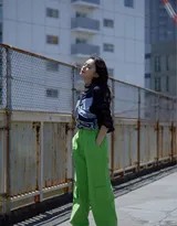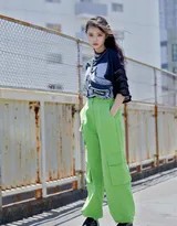 青夏街头一抹绿影林允演绎牛油果系酷感美学